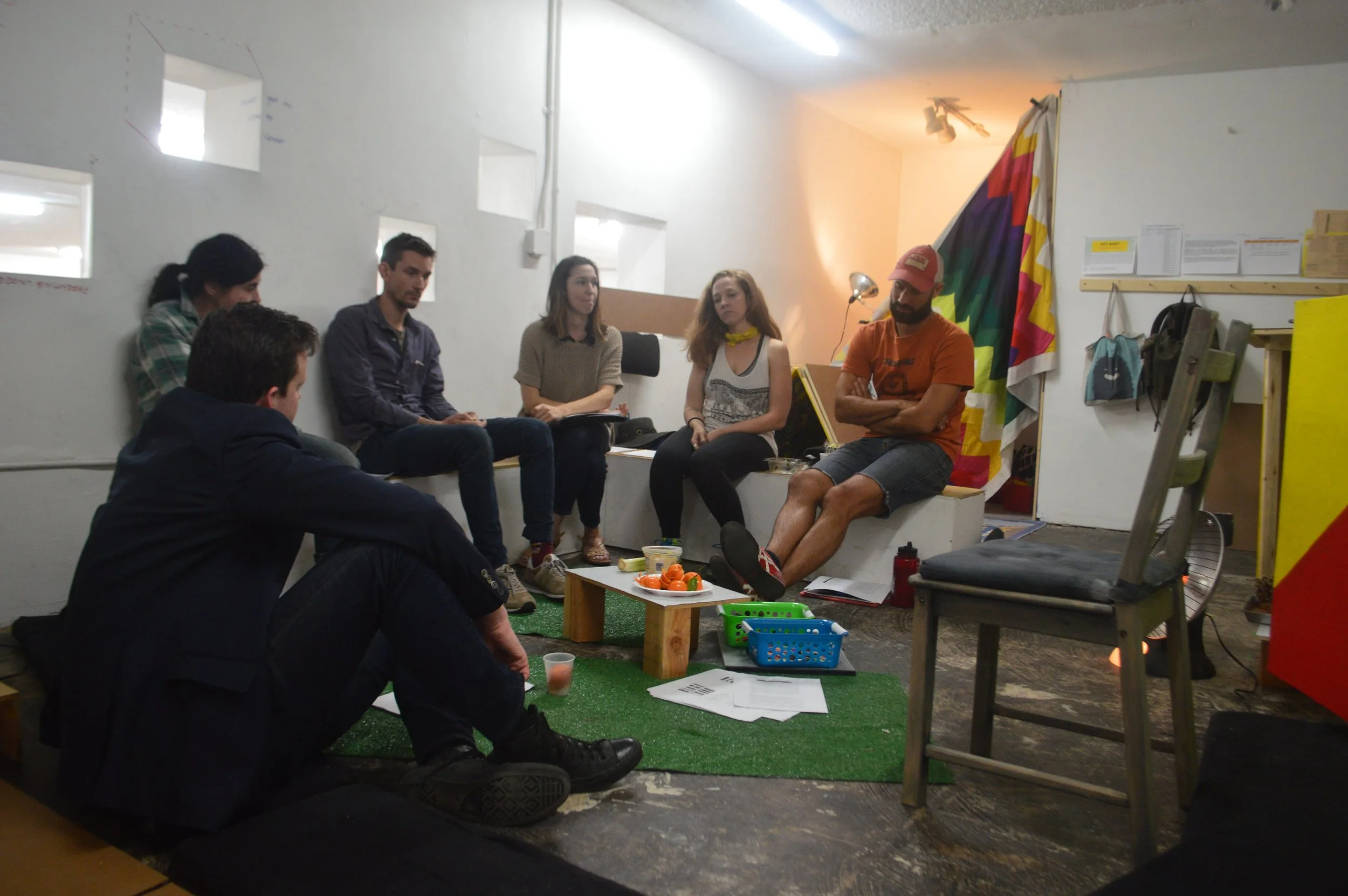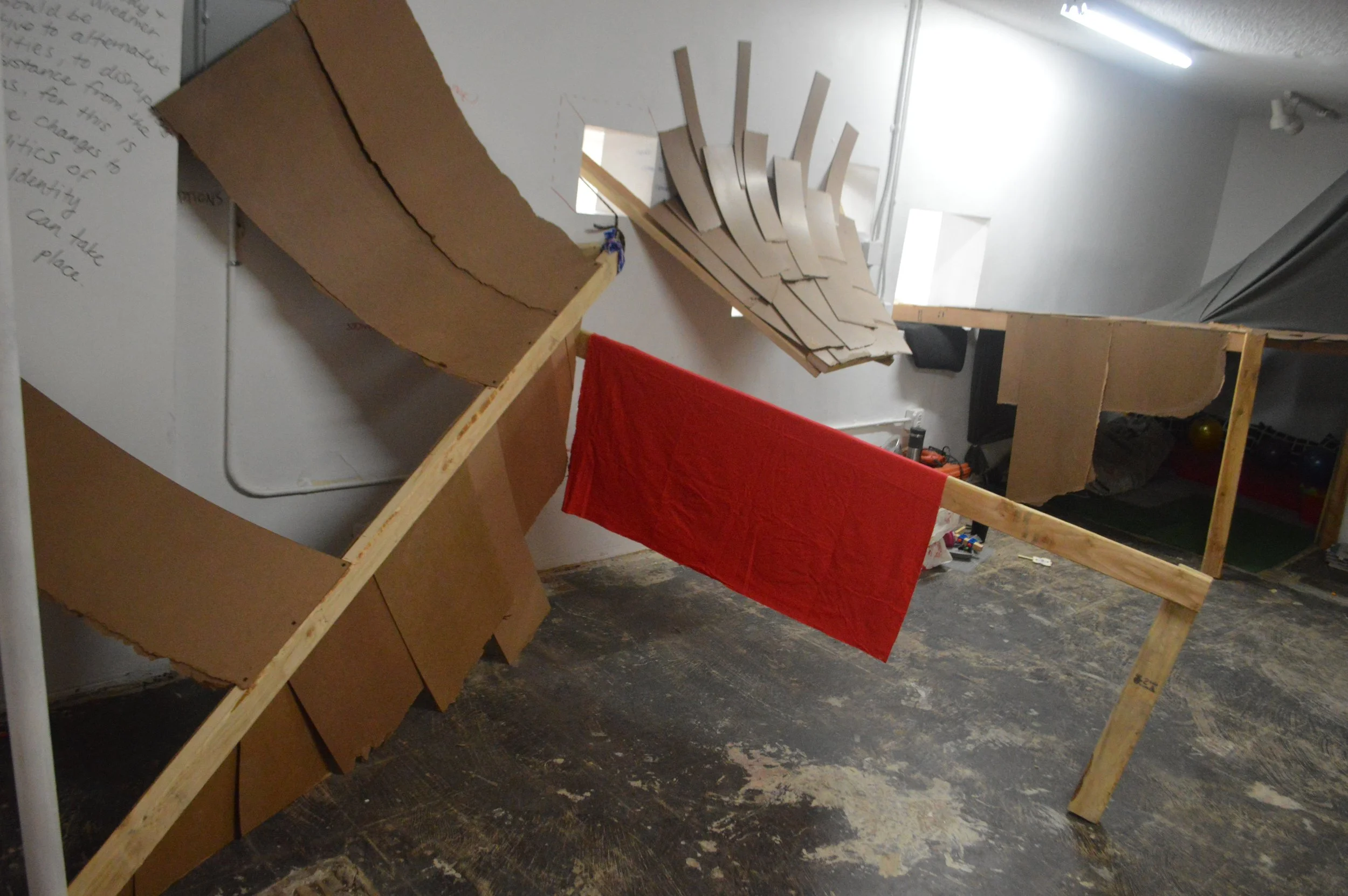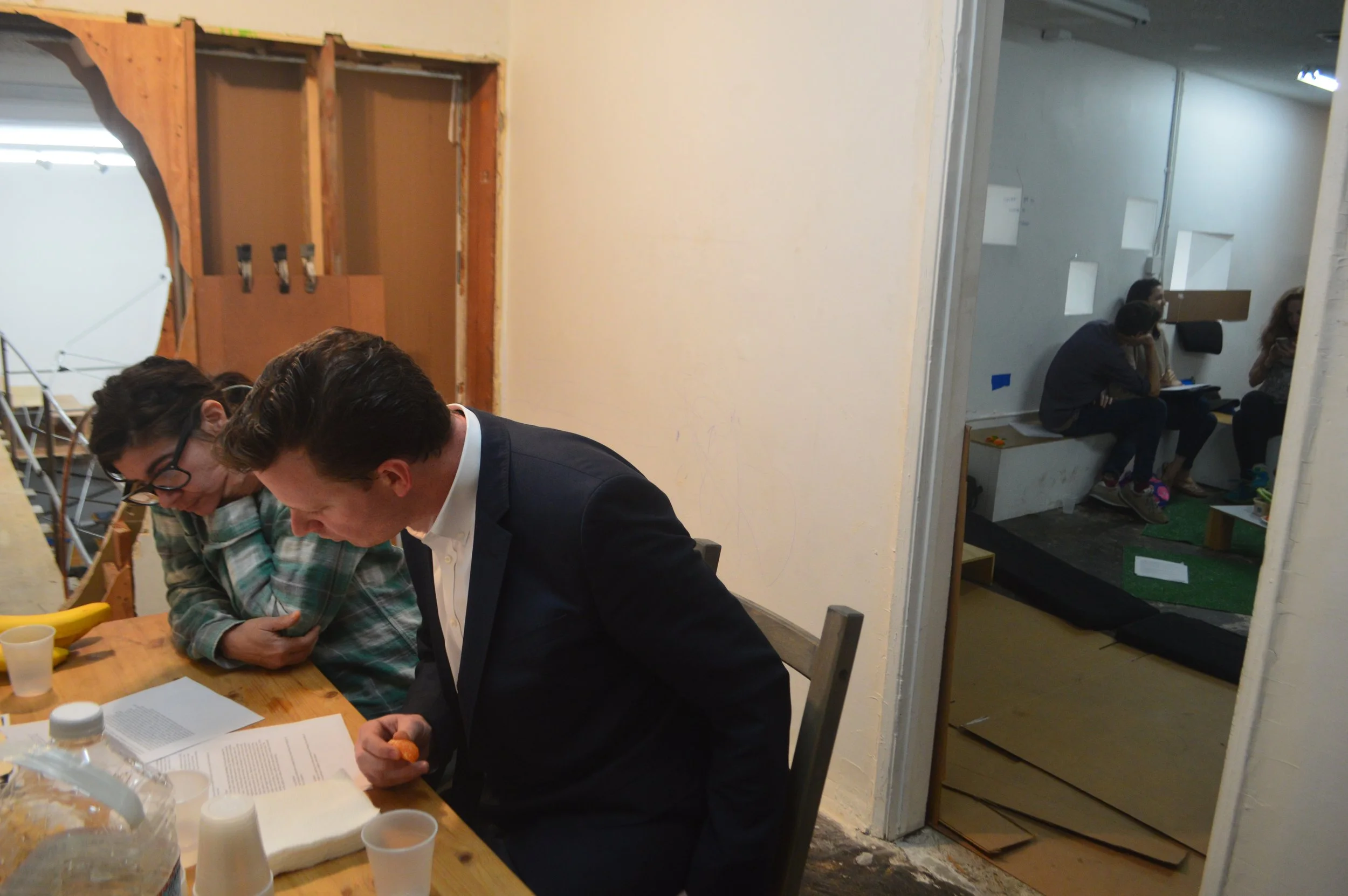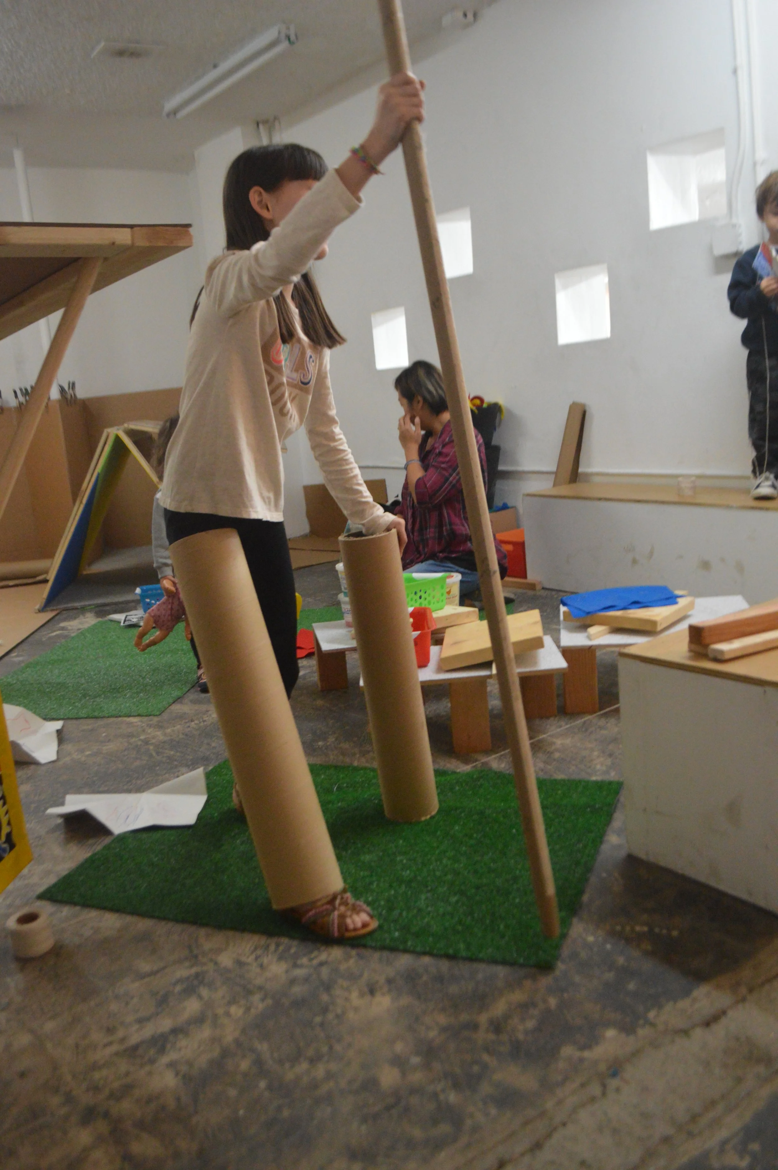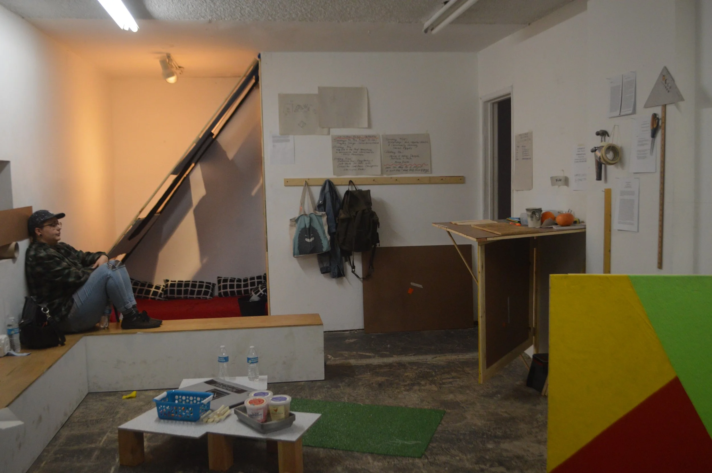 Our co/work/play space was outfitted with art supplies, reading material, free wifi, coffee, tea and (potluck) snacks. Parents that are chest/breastfeeding had a comfortable place to nurse or pump. Babies had a place to nap. Gender neutral bathrooms are available for all. There was a comfortable place to prepare and eat food. Our work space included soft surfaces, costume and hand-building play, and a co-working desk for adults that also serves as a system of tunnels, secret passageways, and dwellings for child-artists to make their work. Through this process our goal was to build a critical vocabulary and radical affirmation that the ways in which we care for one another must be considered a powerful form of culture work and that the cultural material we create can contribute directly to the wellness of relationship within families, networks of communities, and across conflicting or complex identities. We assert that those people that act as primary stewards of relationship: mothers, parents, grandparents, caretakers are in a significant position to build political, social, cultural power. And the combination of this role with the role of “culture worker” is of critical importance and requires support.