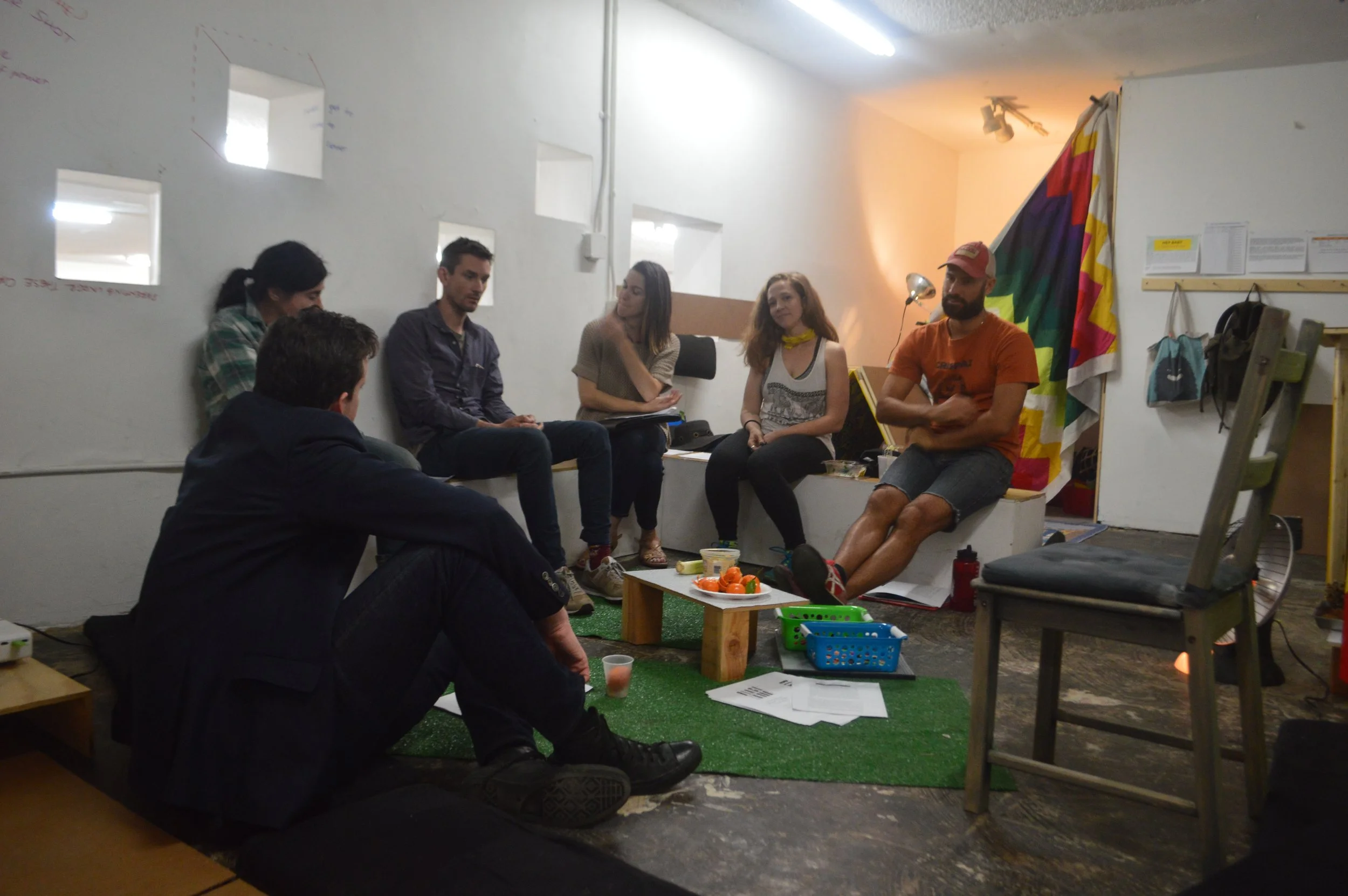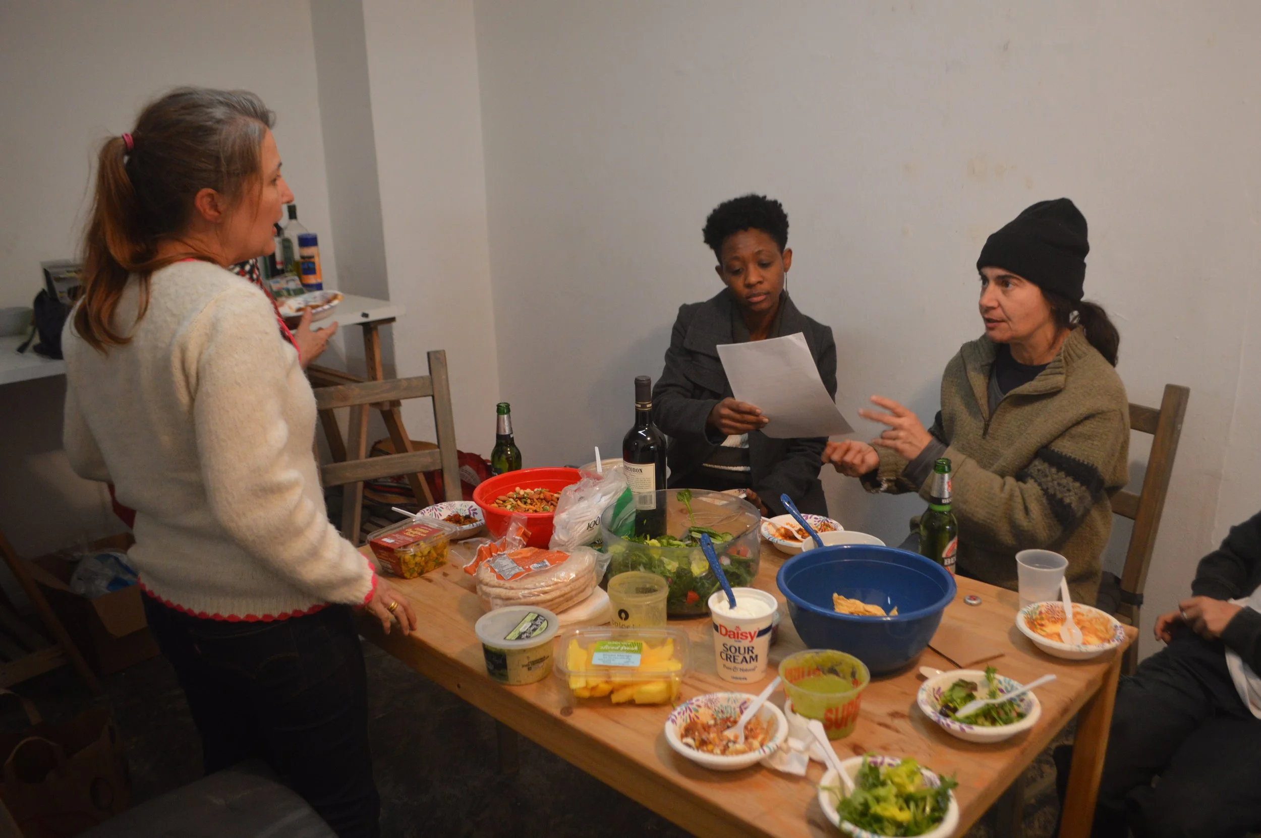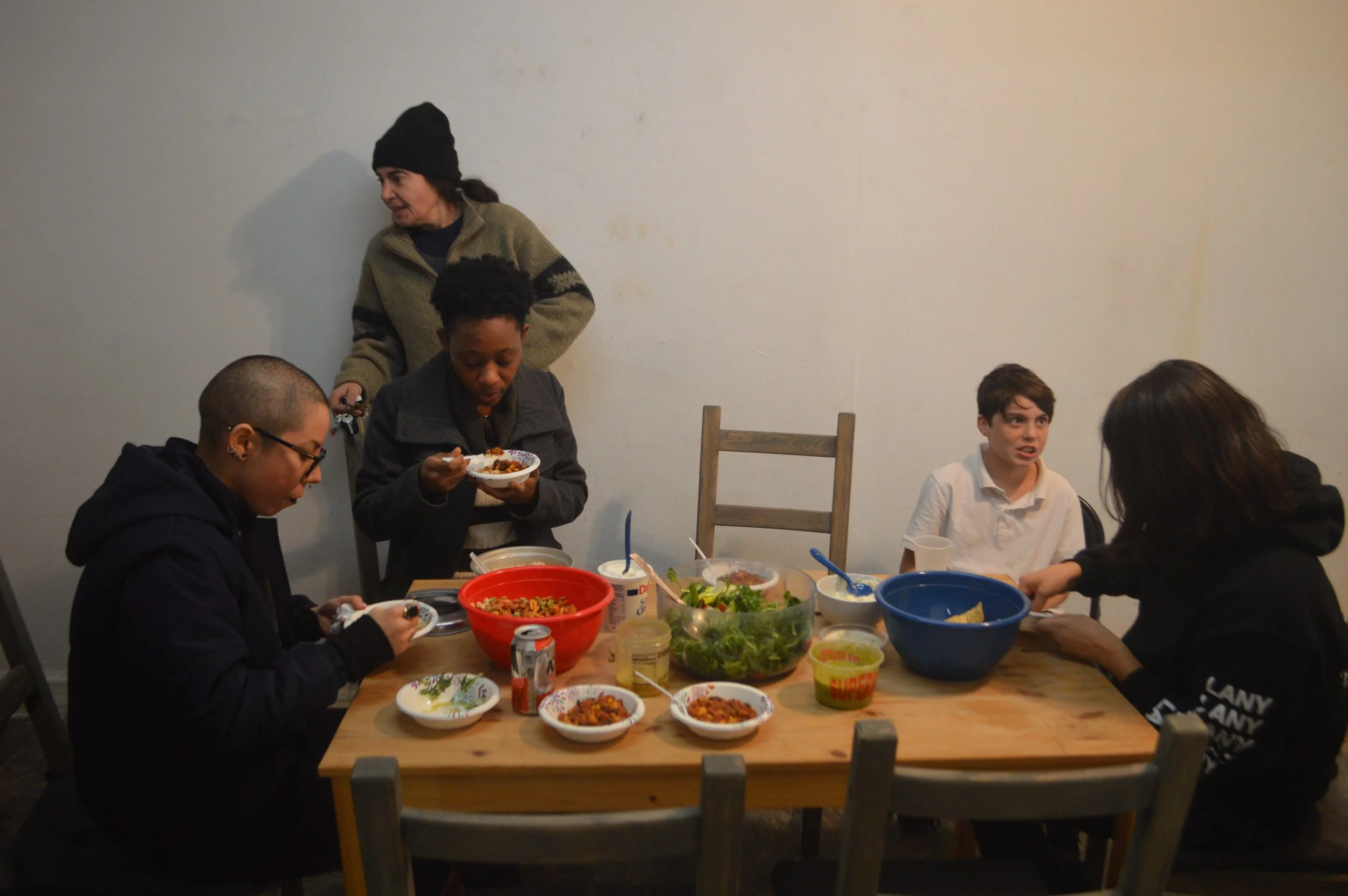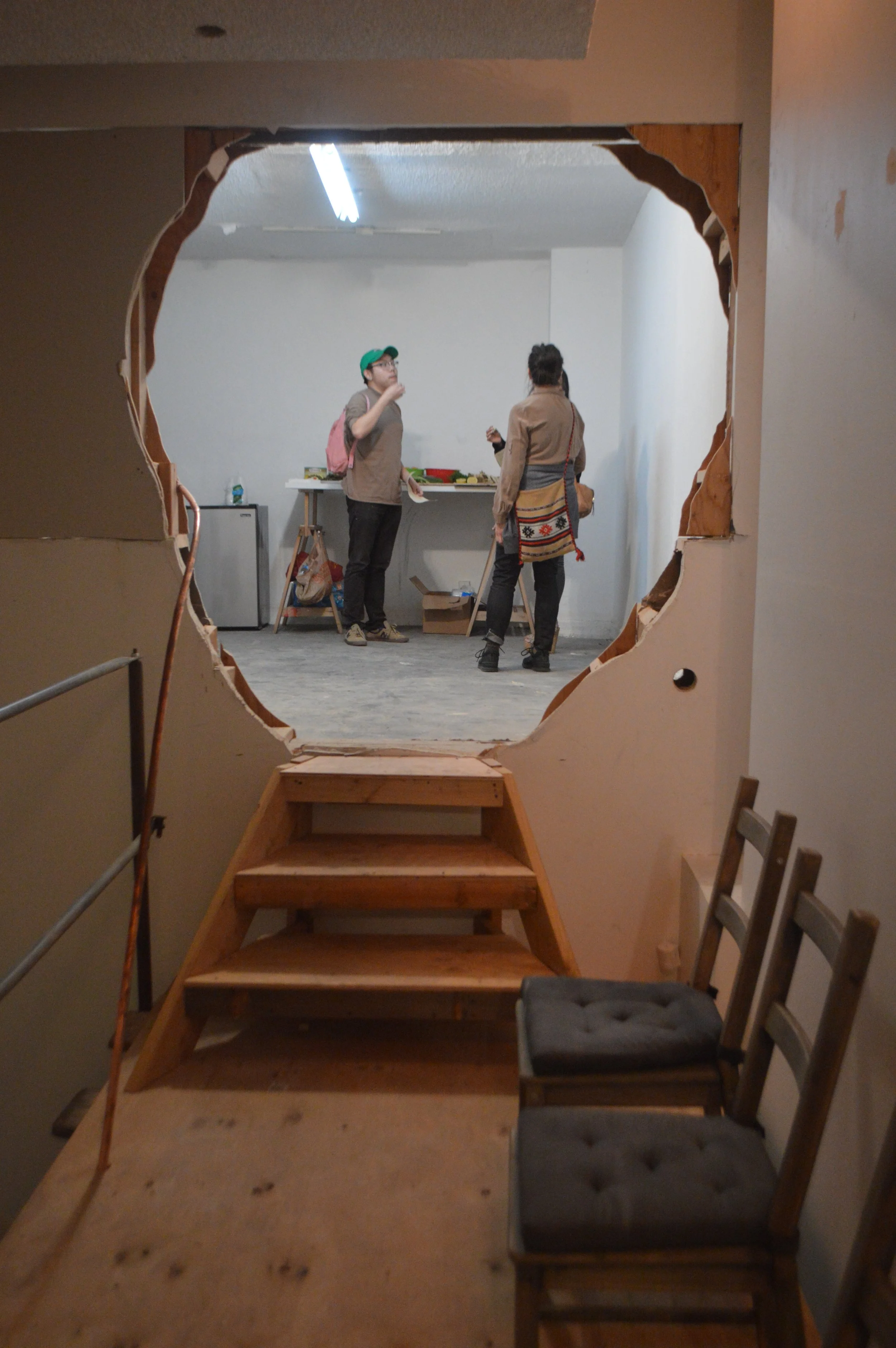 Our co/work/play space was outfitted with art supplies, reading material, free wifi, coffee, tea and (potluck) snacks. Parents that are chest/breastfeeding had a comfortable place to nurse or pump. Babies had a place to nap. Gender neutral bathrooms are available for all. There was a comfortable place to prepare and eat food. Our work space included soft surfaces, costume and hand-building play, and a co-working desk for adults that also serves as a system of tunnels, secret passageways, and dwellings for child-artists to make their work. Through this process our goal was to build a critical vocabulary and radical affirmation that the ways in which we care for one another must be considered a powerful form of culture work and that the cultural material we create can contribute directly to the wellness of relationship within families, networks of communities, and across conflicting or complex identities. We assert that those people that act as primary stewards of relationship: mothers, parents, grandparents, caretakers are in a significant position to build political, social, cultural power. And the combination of this role with the role of “culture worker” is of critical importance and requires support.