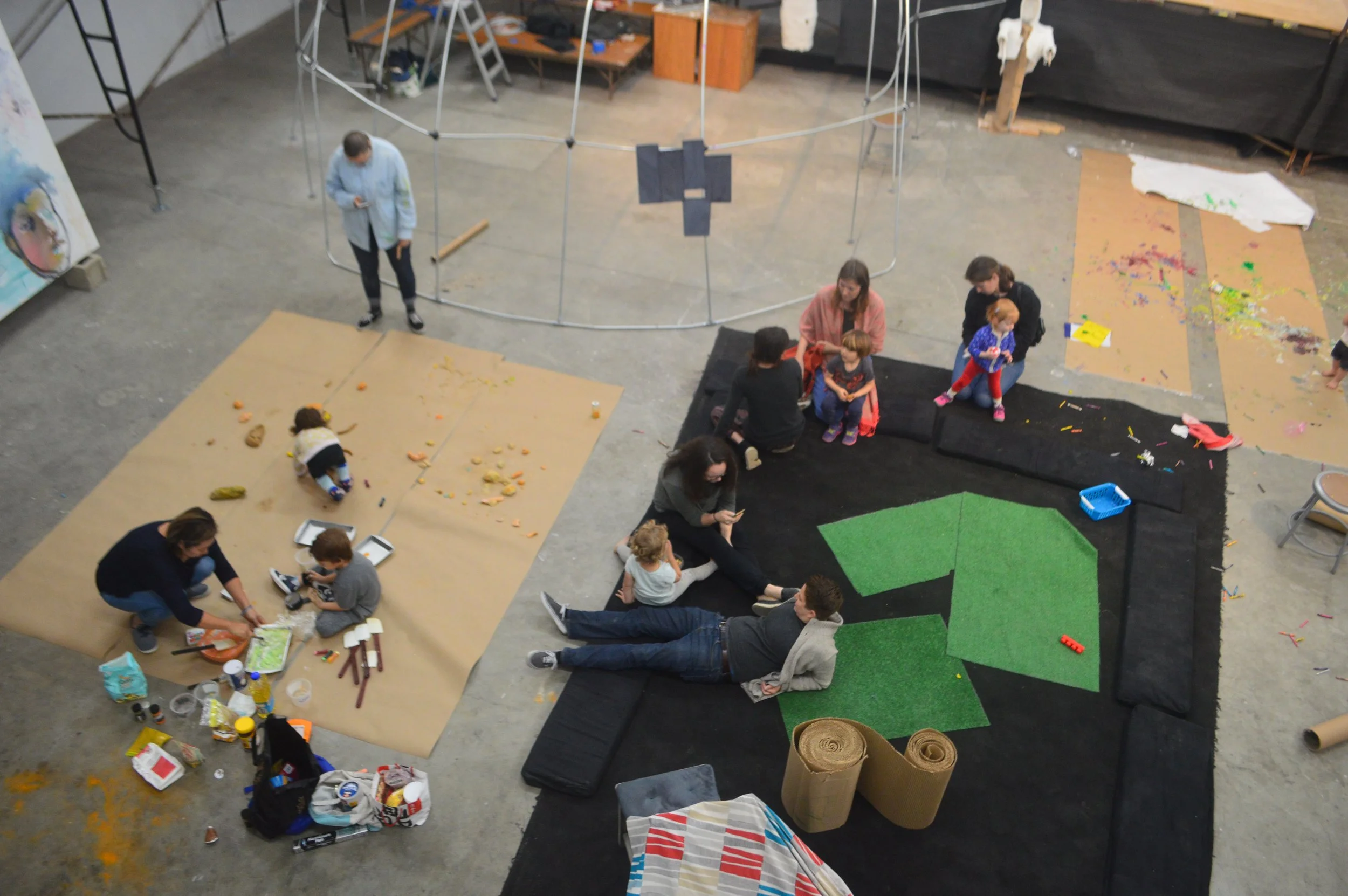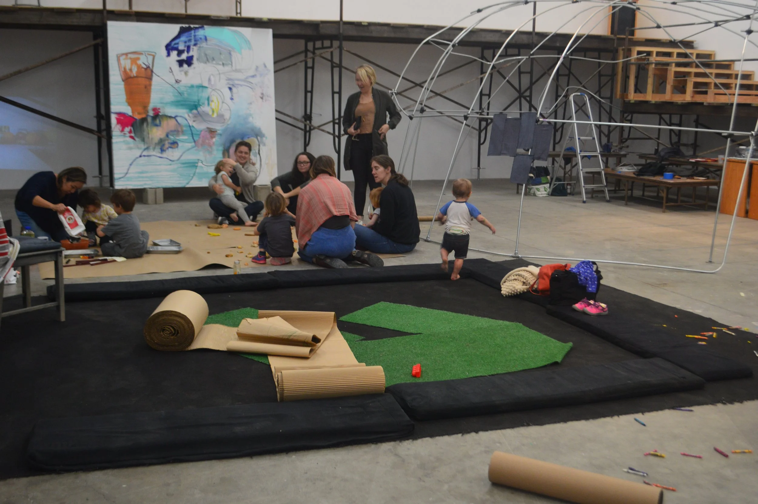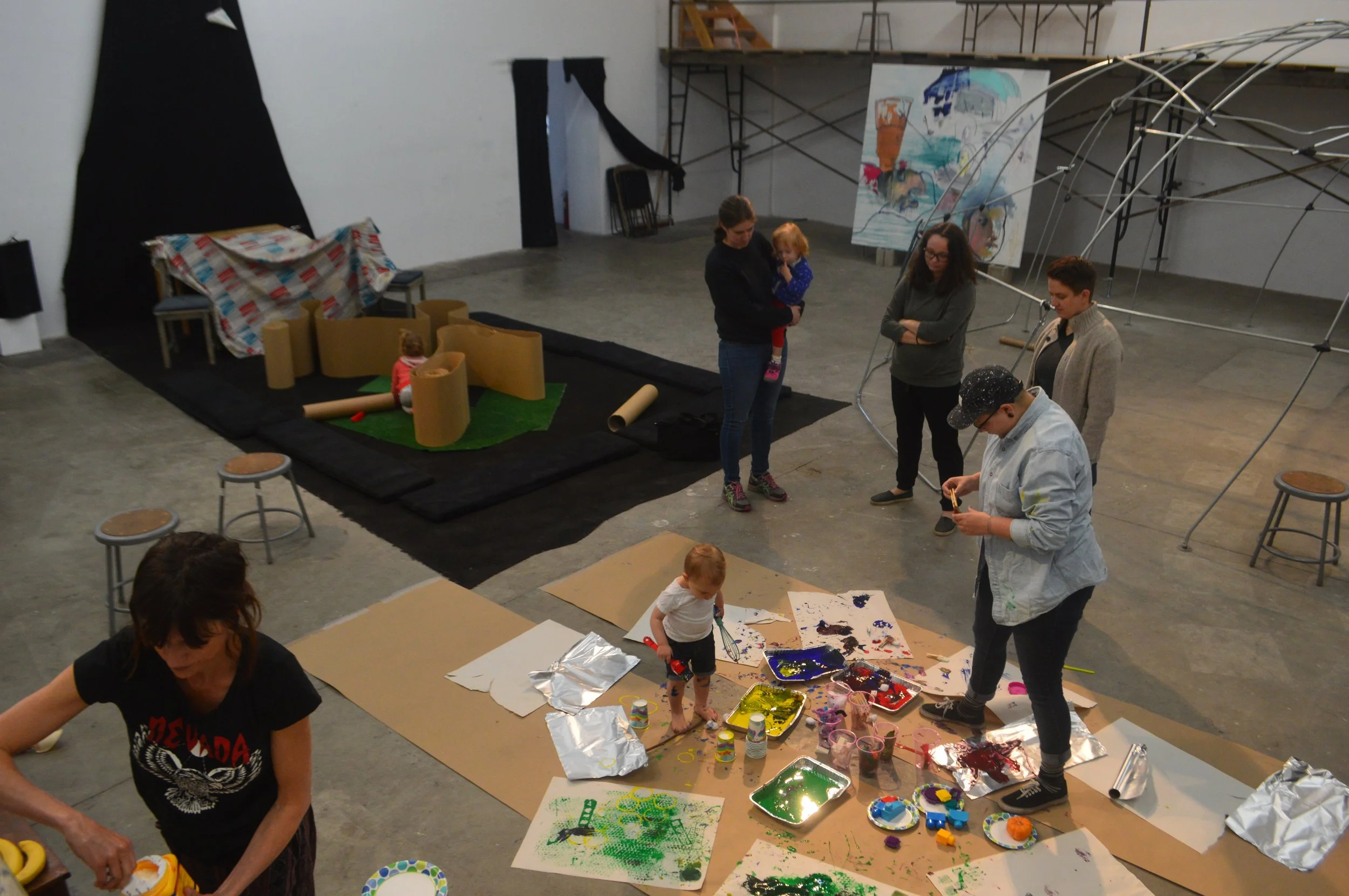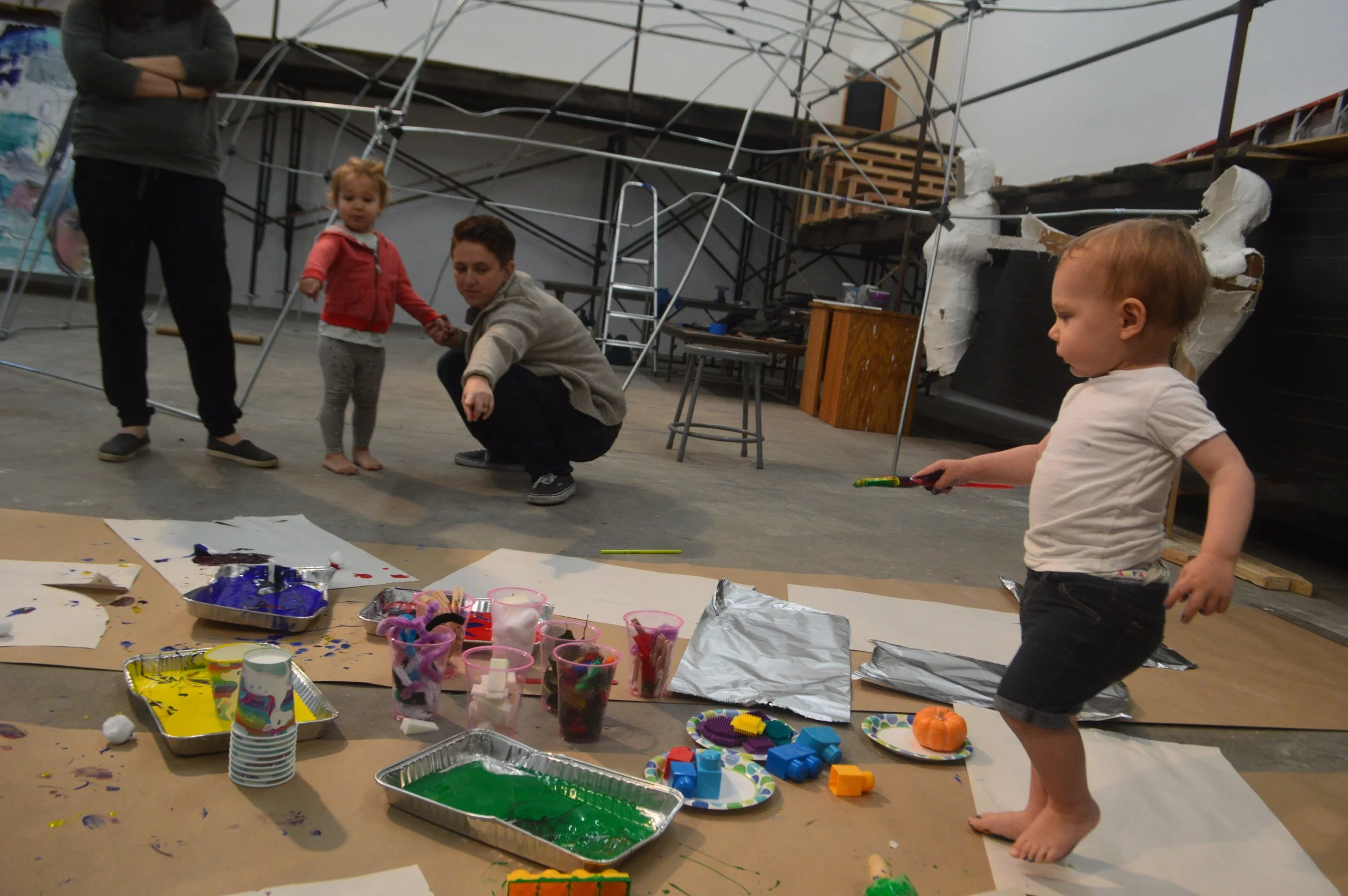 “CO/WORK/PLAY” was an exploration into the assertion that culture work is a form of care and care is a form of culture work. This collective project unfolded over the course of one month in 2018 through a series of co/work/play meet ups among children, babies, and their caretakers within the HEY BABY community founded by Gilda Davidian with the Feminist Center for Creative Work. On two days a week families were invited to use the second floor of Human Resources as an open art studio space that centered simultaneous work and play, divergent artistic and labor practices, and the critical importance of care as a cultural contribution. The results of our work together were shared within the larger exhibition at Human Resources titled, “We: TBD”, the form and focus of our installation determined by our shared process.